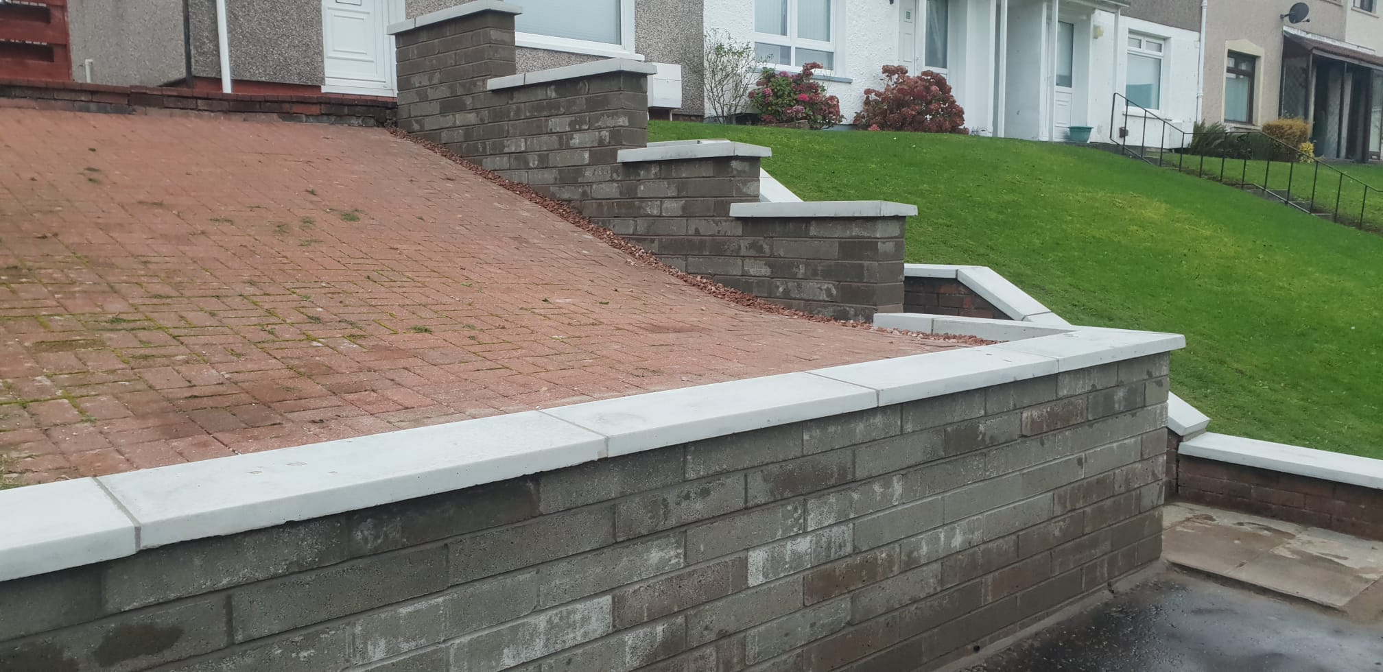 Rebuilt a failed retaining wall using concrete block and a good quality cope stone. Before and after.